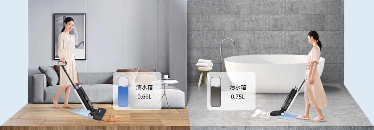 前置地刷清潔水箱,提高地刷的抓地力;機身重量減輕1000G,羽量和手感更易清潔