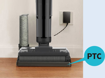 充電收納系統(tǒng)中增加了PTC,清洗完機器后將滾筒刷烘干,從而解決滾筒刷因潮濕引起的霉變和異味問題。